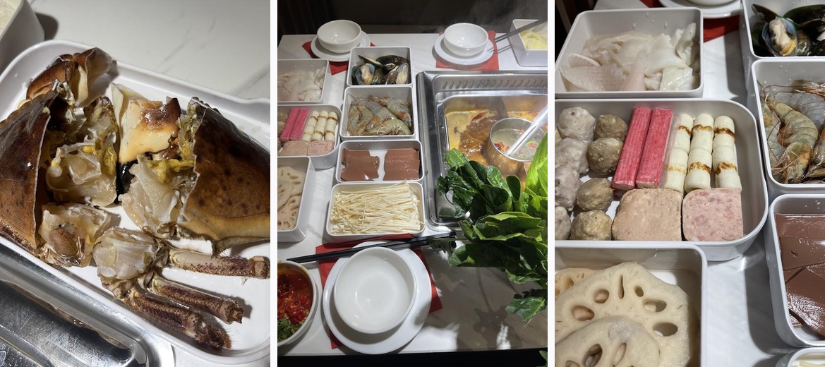 We had hot pot here on a Wednesday evening- the selection of meats, seafood and vegetables was very good and the soup bases were delicious and super flavourful. Great selection of sauces to choose from and there were some vegetables on the side also like cucumber salad and seaweed salad. Everything was perfect, thank you ☺️
